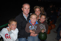 The boys made Halloween costumes pretty easy on me this year. We just had to choose a weapon and the rest just followed. The weapons of choice this year were guns (ever since Jer shot his dear the boys have been obsessed with them! So naturally they were Cowboys! Every time they changed their minds I would just have to tell them that they would not be able to carry their guns (not that they could at school anyway)...So cowboys they were! We went to dinner at some friends house and then headed out into the pouring....miserable rain. I made the boys take off their costumes..except for the guns of course to do any trick or treating! So the neighborhood just thought the boys were gun crazy kids! The rain may have slowed them but it definitely didn't stop them, we made it around the block and that was good enough for me and gratefully for them too! Here are some pictures of them when they actually looked like Cowboys! Jer and I got dressed up Friday night for our friend party...I'll post more on that when I get all the pictures from it....Robin!